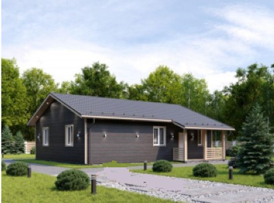 - Крыша классическая двухскатная, покрытие Ондулин. Отделка свесов крыши и свесов над фронтонами (по проекту подшивка), два прохода крыши (трубы для вентиляции с/у и отдельно для кухни).