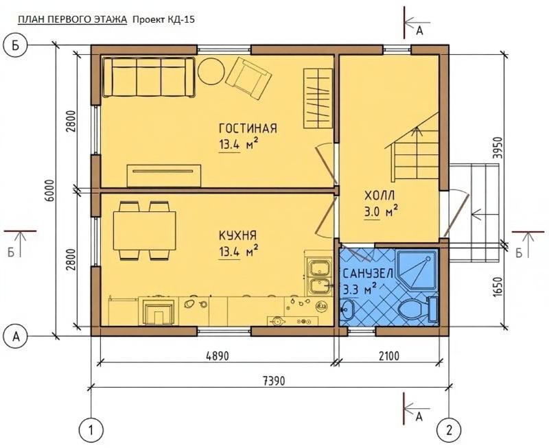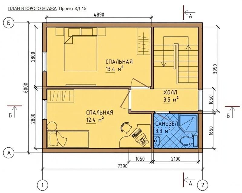 Каркасный дом 2 этажа 6х7,4 89м2 КД-15 (комфорт)