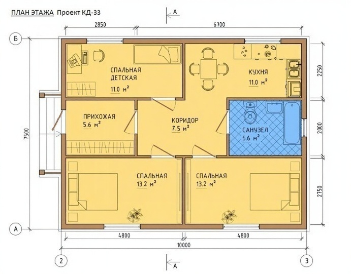 Проект каркасного дома 7,5×10 м «Компакт-75» для круглогодичного проживания