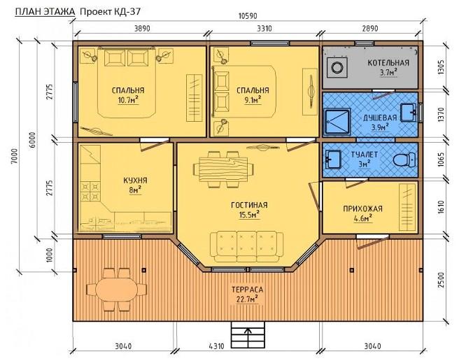 - Полы: Ровные, под ламинат, из OSB 22 мм или фанеры ФК от 16 мм по контробрешётке.