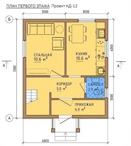 Проект каркасного дома 6×7 м «Универсальный» для круглогодичного использования