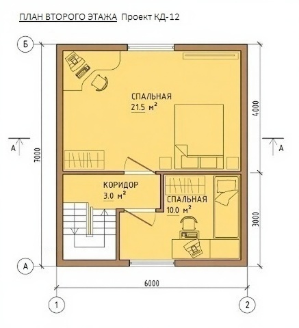 Высота потолков | • Первый этаж: 2.3 м. • Второй этаж: скос 1.2 м – потолок 2.3 м. |