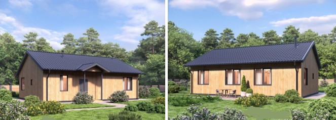 - Крыша классическая двухскатная, покрытие Ондулин. Отделка свесов крыши и свесов над фронтонами (по проекту подшивка), два прохода крыши (трубы для вентиляции с/у и отдельно для кухни).
