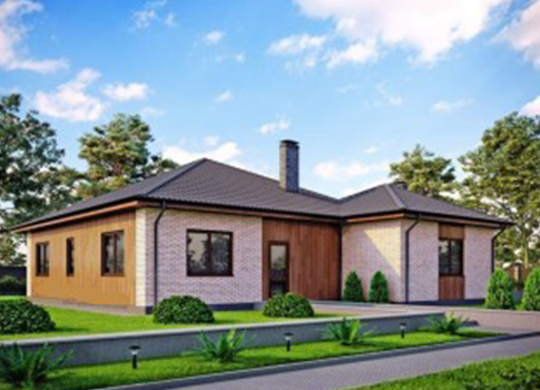 - Крыша вальмовая, покрытие металлочерепица. Отделка свесов крыши и свесов над фронтонами (по проекту подшивка), два прохода крыши (трубы для вентиляции с/у и отдельно для кухни).